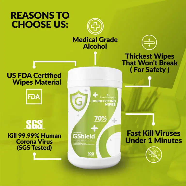 Greenwipesยฎ GShieldโข 70% Alcohol Disinfectant Wipes are formulated with premium 70% Isopropyl Alcohol to deliver ultra-fast kill time against 99.99% pathogens without leaving residues or streaks on surfaces.