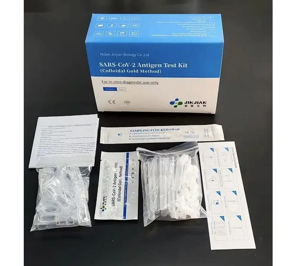 The COVID-19 Antigen Nasal Test Kit is a rapid chromatographic immunoassay and detects SARS-CoV-2 viral antigens in nasal secretions through visual interpretation of colour development.