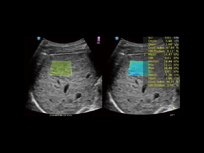 SWE (Shear Wave Elastography) empowers quantitative assessment for liver fibrosis and displays a quality map to enhance clinical diagnostic confidence.