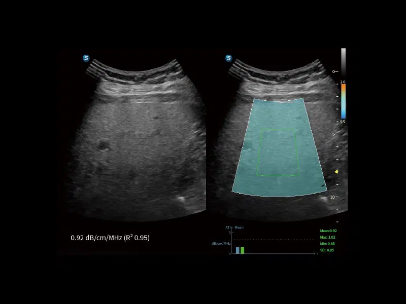 ATI (Acoustic Attenuation Imaging) enables quantitative assessment of liver steatosis through measuring the attenuation coefficient and assists clinicians in assessing the degree of steatosis for a reliable prognosis.