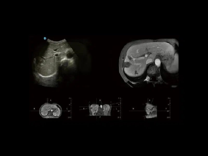 With a built-in magnetic sensor in the probe, SonoFusion eliminates the need for an external magnetic sensor, and fuses the ultrasound data with CT/MR data to achieve simultaneous display by image registration. This integration facilitates comprehensive disease analysis by clinicians.